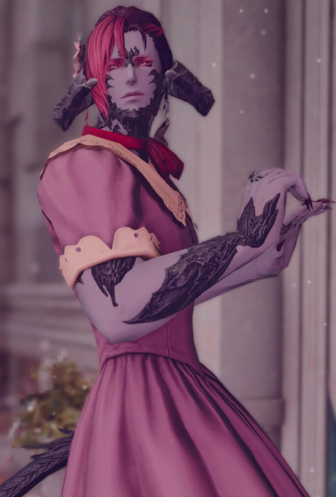 when starting as a fresh faced adventurer, mattonious was one who would boisterously accept any challenge, eager to face any foe, consequences be damned, so long as it meant gaining fame and glory.growing closer with the scions, that selfish goal slowly eked away, changing instead to doing whatever it took to protect his new found friends. this lead to him forcing himself to be discreet about his more emotional side, not wanting to appear 'weak' to those looking up to him for support.for a long while, he did real well putting on the façade of a cocky hero. with Haurchefaunt and Ysale's sacrifices - the grim realization that those who fight with and for him cannot always cheat death - he swore to himself he'd be more honest and open about showing his heartbreak, his resentment, his trepidation.he still maintains his penchant for the dramatics, always choosing flair over practicality. he's also grown far more audacious in making advances towards other men.